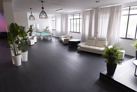 Location in stile Black & White, nata dal recupero industriale delle Officine Meccaniche Edmondo Balsamo: fabbrica milanese del boom economico che riprende vita attraverso il ri-uso dei materiali. Le piante tropicali invadono gli spazi ridando al vecchio nuova linfa.